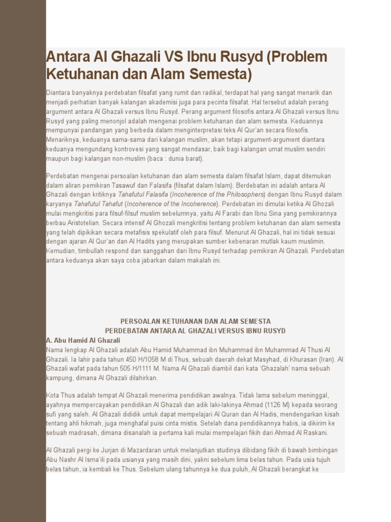 Filsafat Al Ghazali Vs Ibnu Rusyd